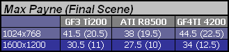 Mało liczb, co? No to jadę dalej. Max Payne. Ładna gierka D3D z nowszego wysypu. Pomiar robiony demkiem ze sceną finałową.