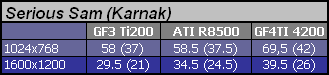 Zaciekawiło mnie że taki Serious Sam, automatycznie dostosowuje się do możliwości grafy, do tego "inteligentne" filtrowanie anizotropowe w R8500, czy to aby nie początek nowego trendu? Kiedy pomyśle o kotle jaki się robi na mijankach w strzelankach, to nie miałbym nic przeciwko, by karta sama obniżała jakość obrazu dla zachowania płynności i przejrzystości sceny (kiedy trzech kolesi naparza się z rakiet w korytarzu 2 na 2, to nikt nie myśli o podziwianiu krajobrazów:))
