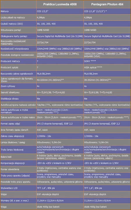 Od niedawna na polskim rynku w sprzedaży dostępne są aparaty Luxmedia 4008 znanej firmy Praktica (niemiecki koncern Pentacon) oraz bliźniaczo podobny do Luxmedii, Photon 484 firmy Pentagram. Dziś one poszły na warsztat testowy TwojePC - zapraszam serdecznie do recenzji. | |