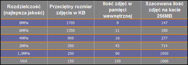 Wyświetlacz LCD prócz pokazywania kadru, wyświetla także informacje o trybie pracy, włączeniu samowyzwalacza lub zdjęć seryjnych, trybie makro, balansie bieli (jeśli inny niż auto), trybie lampy błyskowej, korekcji ekspozycji/ostrości/nasycenia/ kontrastu (w zależności od ustawień) przysłonie, czasie ekspozycji, czułości matrycy (jeśli inna niż auto), rozdzielczości i jakości zdjęcia, dacie i godzinie, blokadzie AE lub AF (jeśli włączone), sposobie pomiaru oświetlenia, zoomie, ilości wolnego miejsca w pamięci oraz stanie baterii. Wszystkie te informacje wyświetlone są w sposób czytelny. Niemniej jednak mam kilka zastrzeżeń. Wskaźnik poziomu baterii nie jest wyświetlany cały czas, tylko pojawia się od czasu do czasu - nie zaobserwowałem jednak konkretnego schematu, kiedy się pojawia. Drugą uwagą jaką mam to brak informowania użytkownika o tym, jakie parametry zostają dobrane podczas robienia zdjęć w trybie automatycznym. Na pochwałę zasługuje jednak możliwość wyświetlenia histogramu w czasie rzeczywistym, podczas kadrowania.