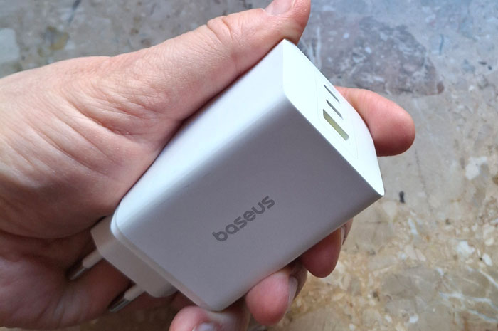 Podczas podłączenia jednocześnie ultrabooka z możliwością ładowania przez USB-C oraz smartfona z superszybkim ładowaniem tylko jedno urządzenie dostaje maksymalną moc ładowania, czyli laptop, zaś smarfton już nie ładuje się w super szybkim tempie (27W) lecz w szybkim tempie (21W). Podobnie jest przy podłączeniu dwóch smartfonów, wówczas tylko jeden jest w stanie ładować się pełną mocą (27W), zaś drugi obsługiwany jest już trochę wolniej (21W). Podczas pełnego obciążenia nagrzewanie ładowarki nie jest zbyt duże, co należy uznać za plus. Nie wydaje też z siebie żadnych dźwięków podczas ładowania.