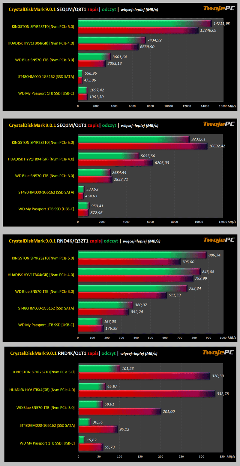RECENZJE | Test NVMe Kingston FURY Renegade G5 PCIe 5.0 i Huadisk HV3000 GE 4.0