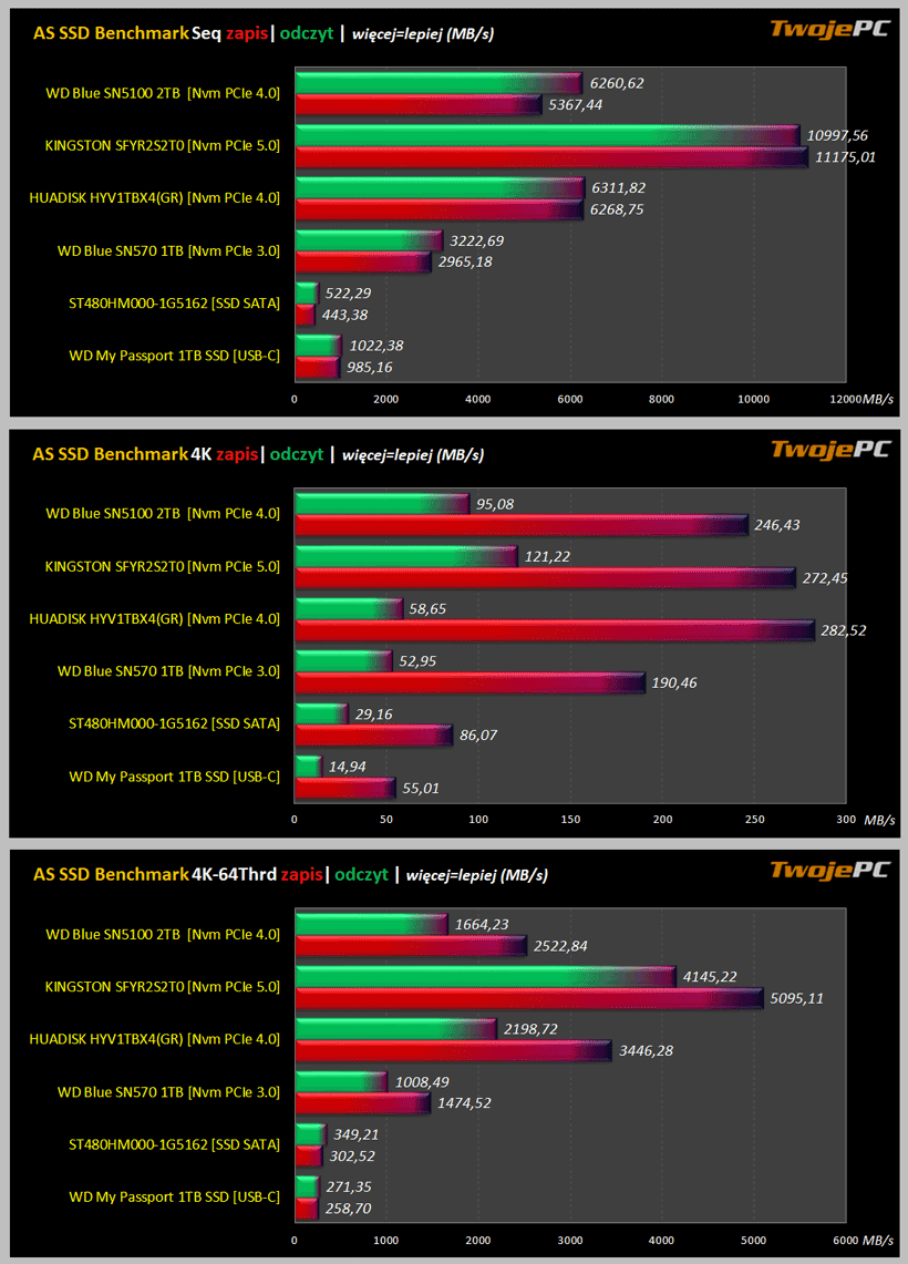 Rozdziały: Test dysku WD Blue SN5100 NVMe SSD o pojemności 2TB |