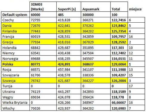 jezeli to trudne zadanie to podpowiem wam, Polacy dostali przecietny cpu - swiadcza o tym uzyskane wyniki w superpi i aquamark, zas w uzyskaniu zwyciestwa pomoglo wysokie przetaktowanie karty graficznej.