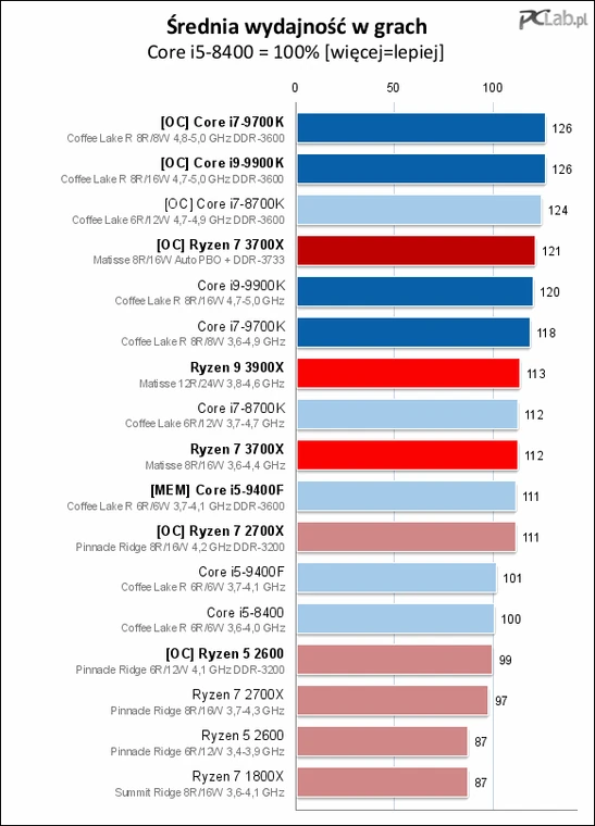 No ale gdzie to uzasadnienie? Te dodatkowe wątki, które nie powodują żadnej przewagi, a jedynie umożliwiają "dotrzymanie kroku" dla 16 wątków i9? Wyniki są takie, że i9 jest nadal parę procent szybszy. Nawet, jeżeli Ryzen pracuje w zestawach z pamięciami 3200-3600MHz. I nawet w rozdzielczościach 4K, gdzie wąskim gardłem staje się nawet najmocniejsze GPU