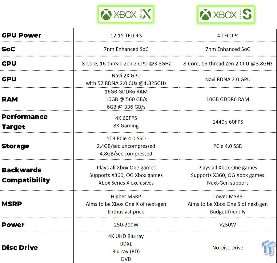 (12) | 10 listopada do sprzedaży trafią najnowsze konsole Microsoftu, czyli Xbox Series X i Series S. Obie otrzymają 8-rdzeniowy procesor od AMD z rdzeniami Zen 2 oraz GPU na bazie RDNA2. Ten w wersji X będzie o wiele wydajniejszy (12TFLOPS vs 4TFLOPSów), co zresztą odzwierciedla wyższa cena - 2250zł vs 1350zł. Obie konsole otrzymają też 16GB pamięci RAM, nowoczesne interfejsy komunikacyjne oraz bardzo szybki dysk SSD. Użyty nośnik ma mieć 1TB pojemności, ale będzie też można rozszerzyć go o dodatkowy, 2TB moduł kosztujący $200. Teoretycznie wygląda to bardzo dobrze, ale biorąc pod uwagę, że nowe gry będą o wiele większe niż obecnie, to w sumie ten 1TB nie wygląda wcale imponująco. Zwłaszcza, że jak się dowiedzieliśmy niemal 20% jego pojemności będzie zajęte przez system operacyjny.